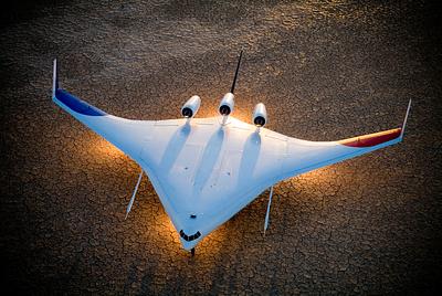 Boeing's X-48B Blended Wing Body technology demonstrator shows off its unique lines at sunset on Rogers Dry Lake adjacent to NASA DFRC. 2006-10-24. Original from NASA . Digitally enhanced by rawpixel.