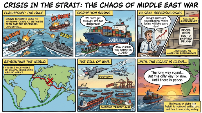 Mr Jensen, CEO of Vespucci Maritime, said about two million TEU of cargo bound for the Gulf will be affected, with much of it offloaded at ports around the Strait of Hormuz. He stressed that while capacity will contract, the disruption is limited compared with the Red Sea diversions of 2023-24.