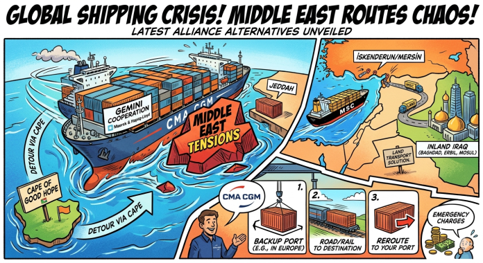 Given the ongoing escalation of tensions in the Middle East—which has led to the suspension of operations at several ports and the halting of bookings by liner companies—regional transportation has been severely impacted. In response, several major carriers have announced updated alternative routing plans.